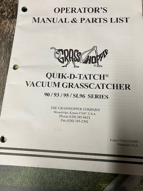 GRASSHOPPER SL 96 Series 90,93,95 QUICK D-TATCH MANUAL 90/93/95/SL96 SERIES #172364-030403